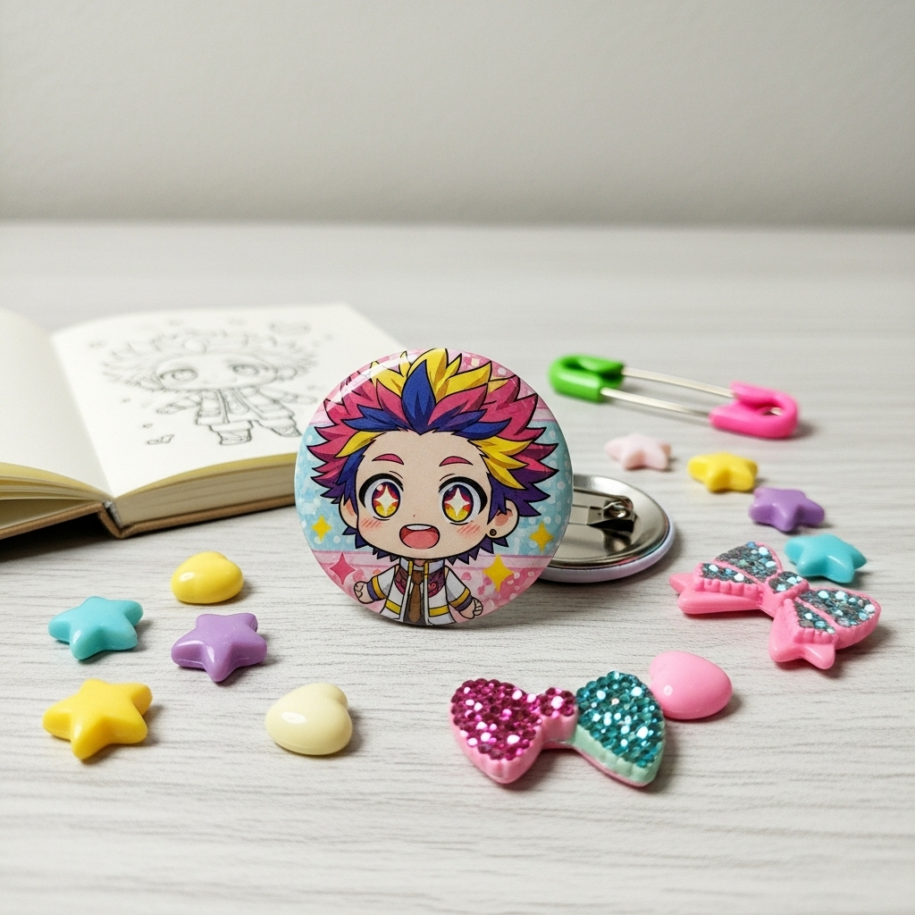 多彩短髮,神情開朗,身著白紅服飾