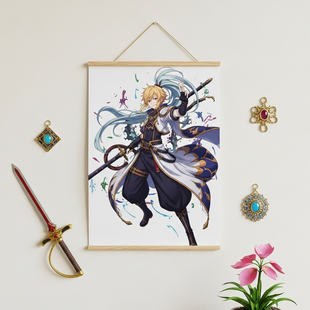 藍金服飾與能量光芒交織